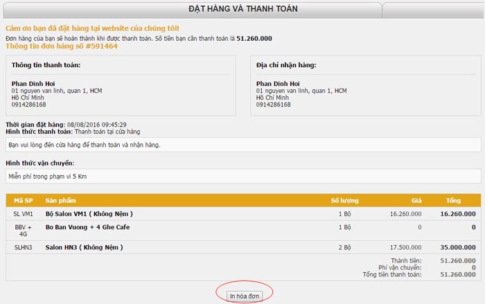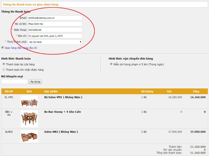 Bước 4: Thanh toán (có nhiều hình thức thanh toán như đến cửa hàng 212 Trần Hưng Đạo, quận 1 để thanh toán, nhận hàng - thanh toán..)